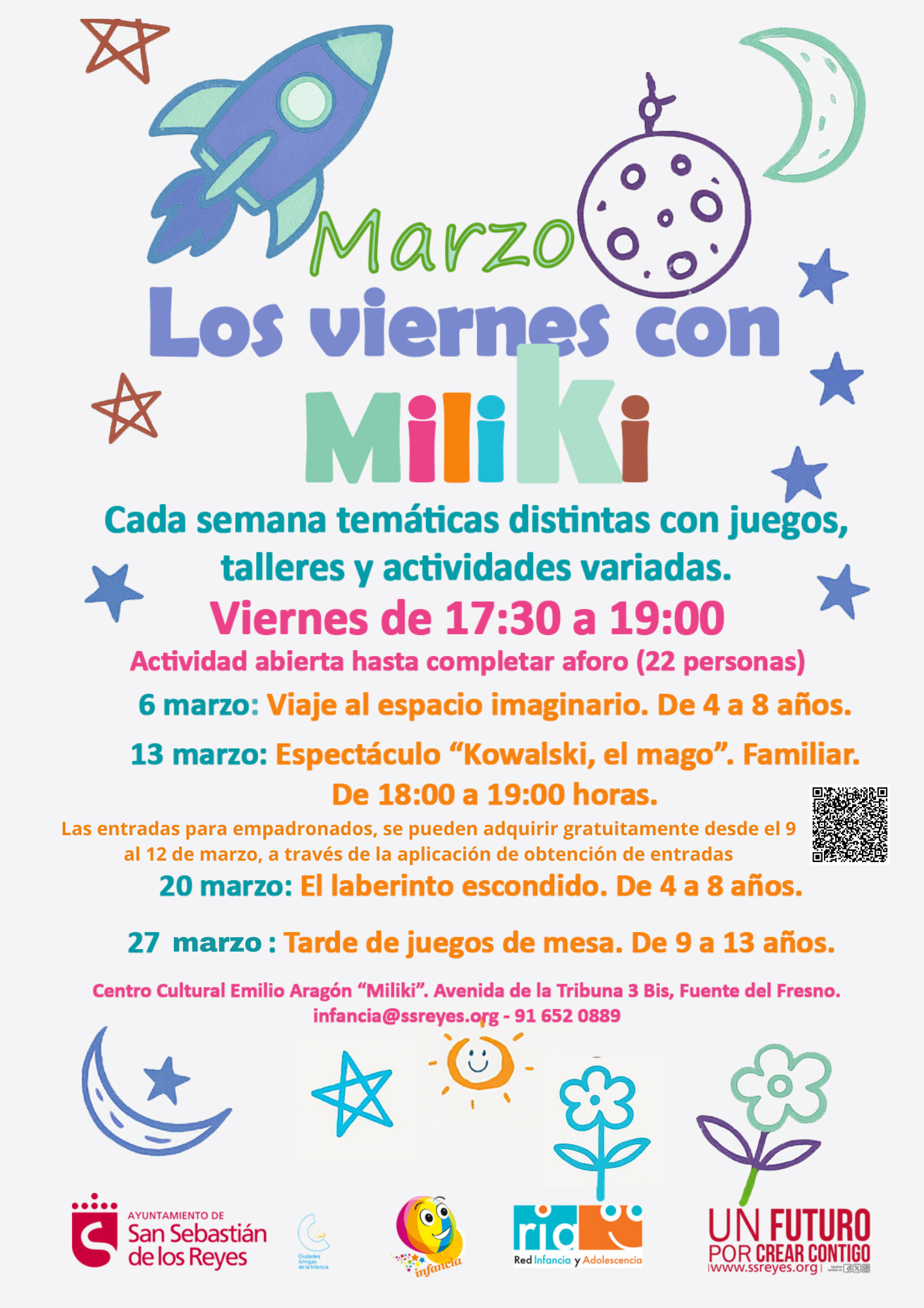 Actividades para la Infancia, de 9 meses a 13 años, de octubre de 2025 a mayo de 2026.