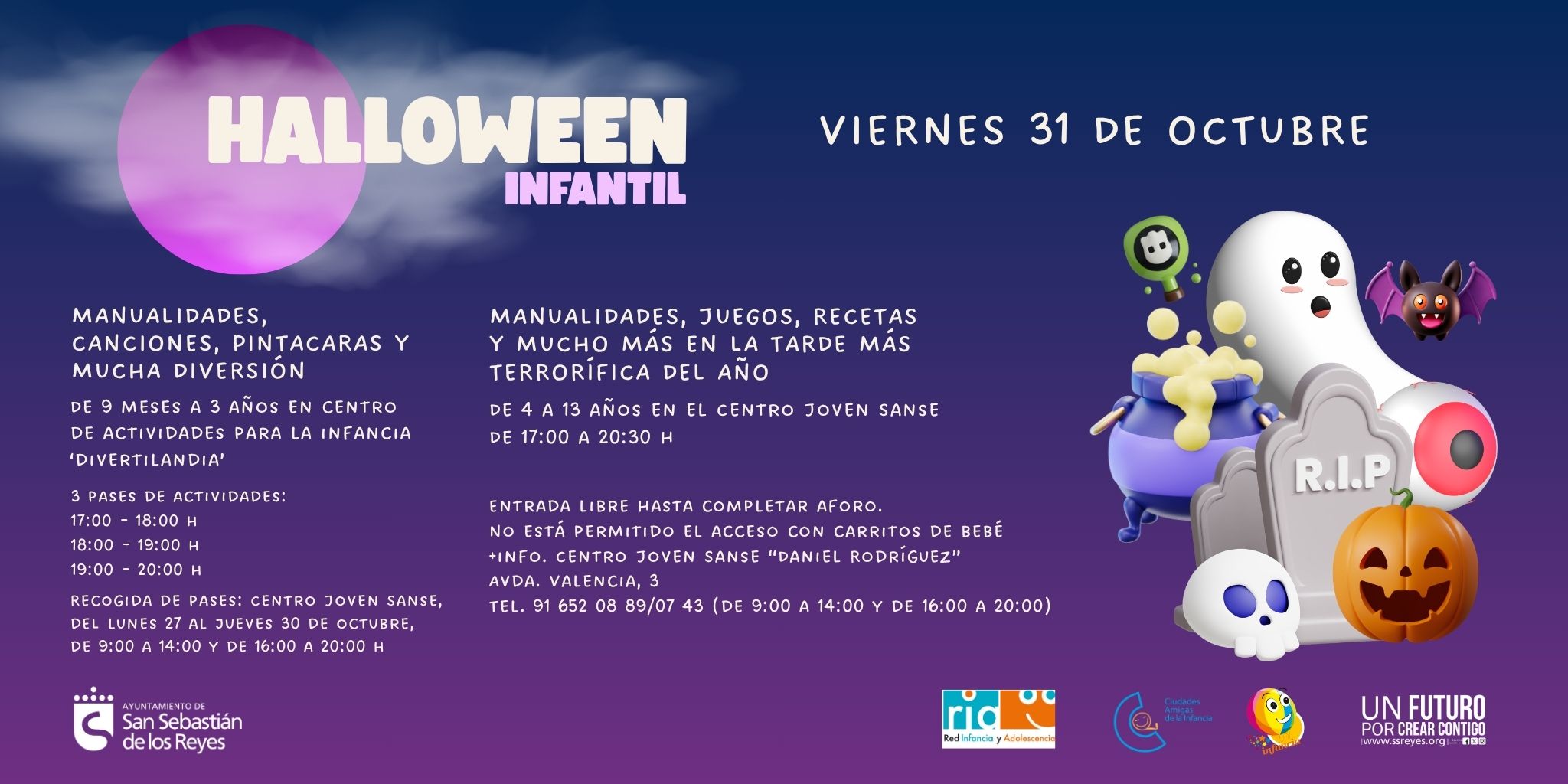 El Ayuntamiento, a través de la Concejalía de Juventud e Infancia, ha preparado una programación especial para celebrar Halloween, con actividades pensadas para distintos grupos de edad, combinando diversión, creatividad y emoción.