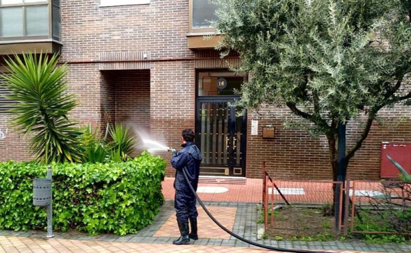 Las labores de limpieza integral y desinfección se realizarán por medio de dos vehículos dotados de máquinas hidrolimpiadoras de 300 bares de presión, un camión cuba y por personal dotado de EPIS (Equipos de Protección Individual), que procederá manualmente, empleando productos siempre ajustados a la normativa vigente -ecológicos, biodegradables y no perjudiciales para los materiales de las fachadas.